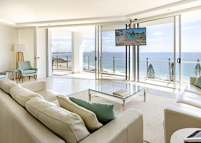 Die Unterkünfte bietet einen Blick aufs Meer und verfügt über einen Patio, einen Balkon und einen Ankleidebereich mit einer Klimaanlage. Besucher des Apartments 5-Star Beachfront Retreat With Theatre & Pool werden den Komfort eines Badezimmers mit einem Haartrockner, einem Wäschetrockner und Handtüchern genießen. Außerdem gibt es eine Wellness-Badewanne, eine getrennte Toilette und eine Dusche usw.